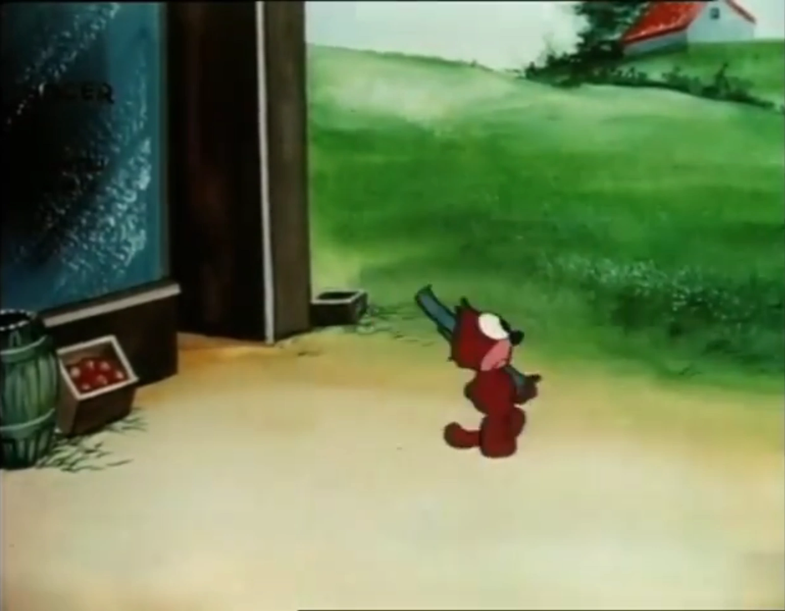 Felix follows their trail to the land of Swiss cheese. When the rats steal the cheese, Felix gives chase across the Alps. But in the end, the rats are victorious, sailing away with their loot, leaving the cat stranded and causing him to lose HIS SWISS CHEESE.
